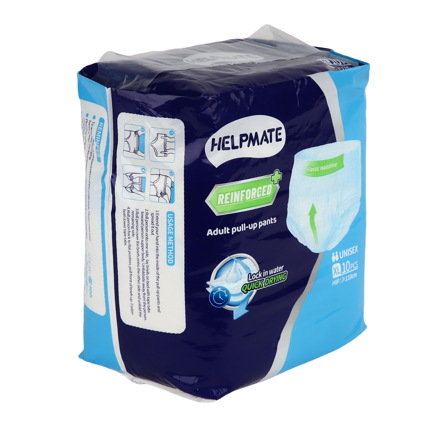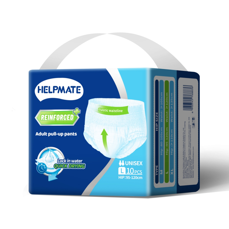 Подгузники Helpmate для взрослых продуманно разработаны, чтобы предложить пожилым пользователям и взрослым, страдающим недержанием, достойное, удобное и хорошо впитывающее решение. Благодаря мягким материалам, дышащей изнанке и защите от протечек наши брюки для взрослых подходят как для повседневного ношения, так и для ношения в ночное время. Доверяют лица, осуществляющие уход, подходят как для активных пользователей, так и для лежачих пользователей.
